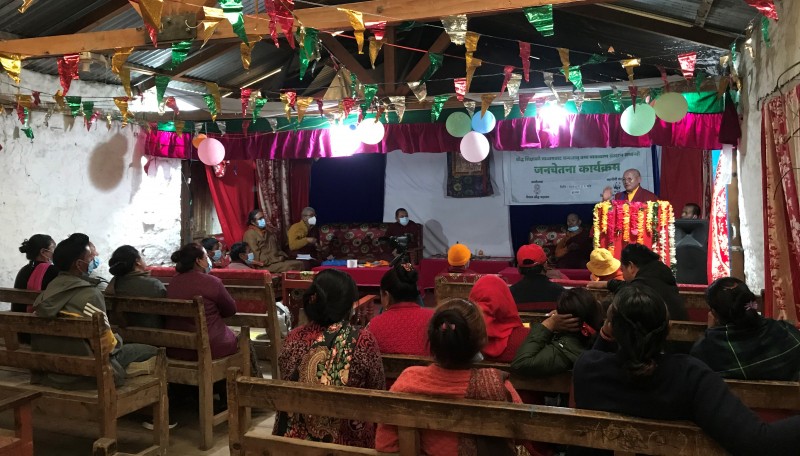 १ नगरपालिका र ३ गाउँपालिकामा आयोजना गरिएको उक्त जनचेतना कार्यक्रम बैशाख २ गतेका दिन जिल्ला समन्वय समितिको सभा कक्षा, ठुली भेरी नगरपालिका, दुनैमा बैशाख ३ गतेका दिन काईके गाउँपालिकाको गुम्बा तारा स्वास्थ्य चौकीको सभा कक्षामा बैशाख ६ गतेका दिन डोल्पो बुद्ध गाउँपालिकाको सभा कक्षामा र बैशाख ८ गतेका दिन शे–फोक्सुण्डो गाउँपालिकाको सभा कक्षामा जिल्ला समन्वय समितिका प्रमुख शेर बहादुर बुढा, गाउँपालिकाका अध्यक्ष, उपाध्यक्ष, वडा अध्यक्ष, सदस्य गोन्पाका प्रमुख लामा, विभिन्न धार्मिक तथा सामाजिक संघ, संस्था, गोन्पा तथा आमा समूहका प्रतिनिधिहरूको साथै गाउँलेहरूको उपस्थिति कार्यक्रम सम्पन्न गरिएको थियो ।