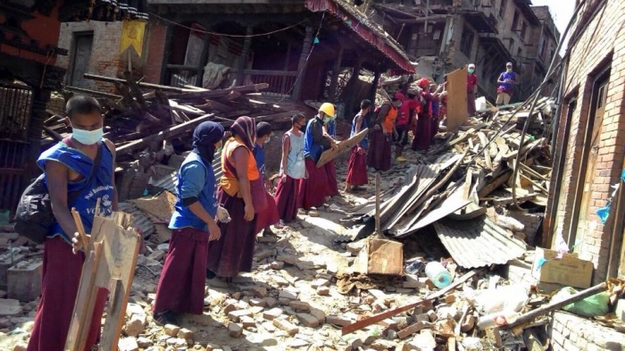 The response by Nepal's monastic community was both spontaneous and rapid. Long before the government responded, monks and nuns were pulling victims from collapsed buildings and using whatever funds were available to buy and distribute food and shelter. After professional search and rescue teams arrived to help in Kathmandu, the monastic community turned its attention to the mountain villages and again were the first to reach survivors and provide aid.